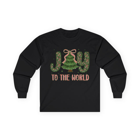 Joy to the World Long Sleeve Tee — Christmas Tree Holiday Shirt