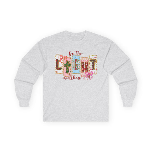 Be the Light Long Sleeve Tee — Inspirational Scripture Matthew 5:14 Design