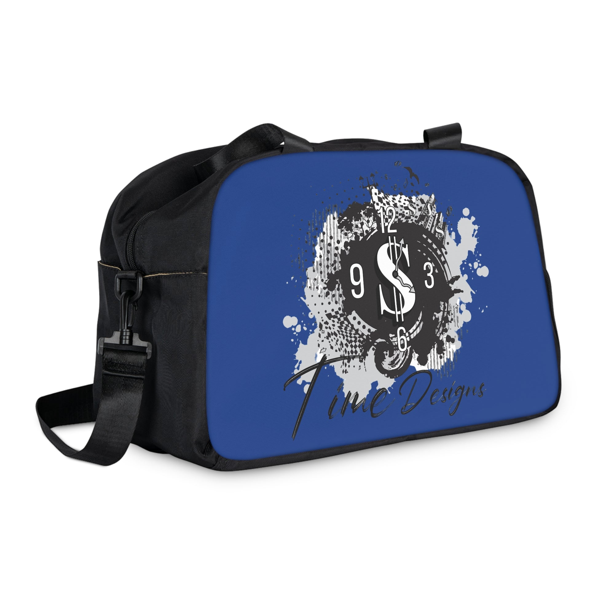 Blue Fitness Handbag with Time Designs, Gym Tote, Workout Bag, Sporty Accessories, Stylish Sling Bag, Unique Sports Gear