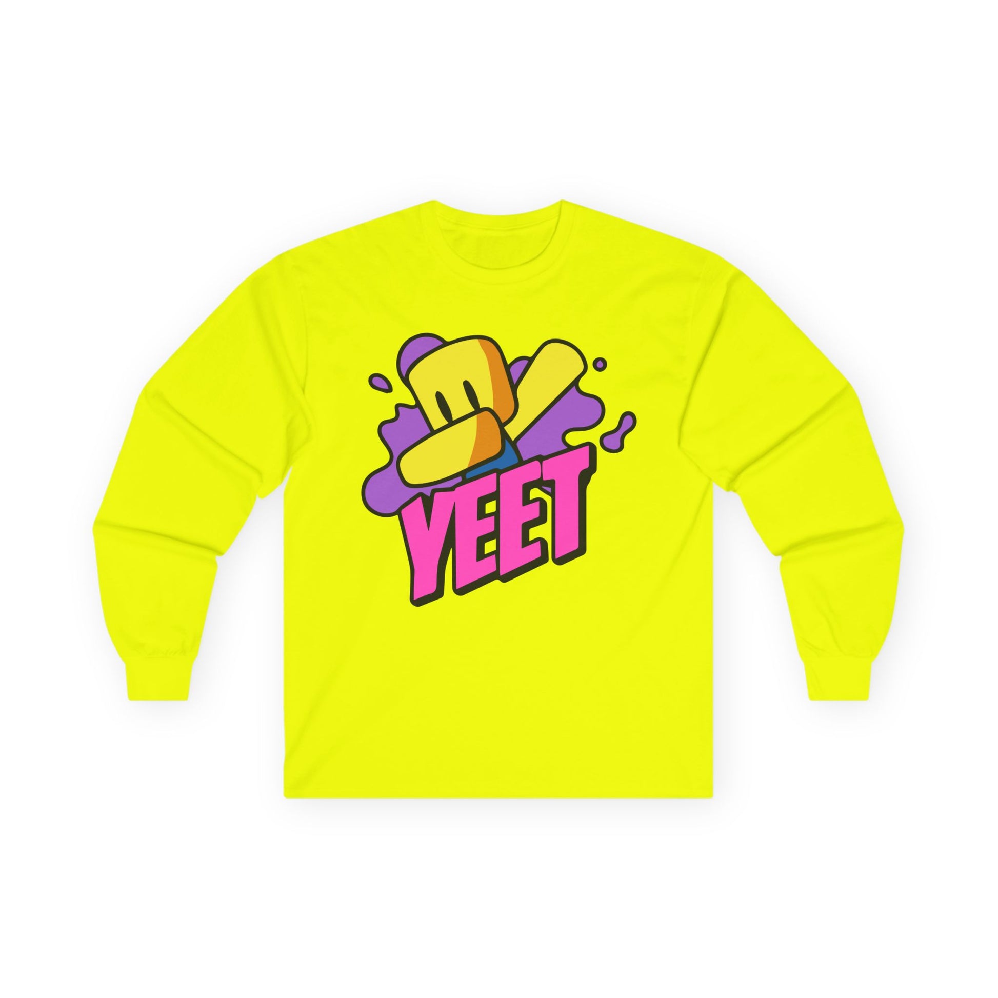 Bright, bold, and full of energy — this long sleeve tee channels playful street-style vibes with a pop-art "YEET" design in neon pink, sunny yellow, and electric purple. The heavier, vintage-feel cotton lays flat and comfortable, while the tubular knit and shoulder tape keep the silhouette clean and long-lasting. Wear it on crisp afternoons at skate parks, late-night hangouts, or casual days when you want one loud, unapologetic statement. The classic fit and ribbed collar give a familiar, lived-in feel that works as everyday wear or as a standout layer under a jacket. Note the sizing runs a touch smaller — many prefer sizing up for a roomier, relaxed look.